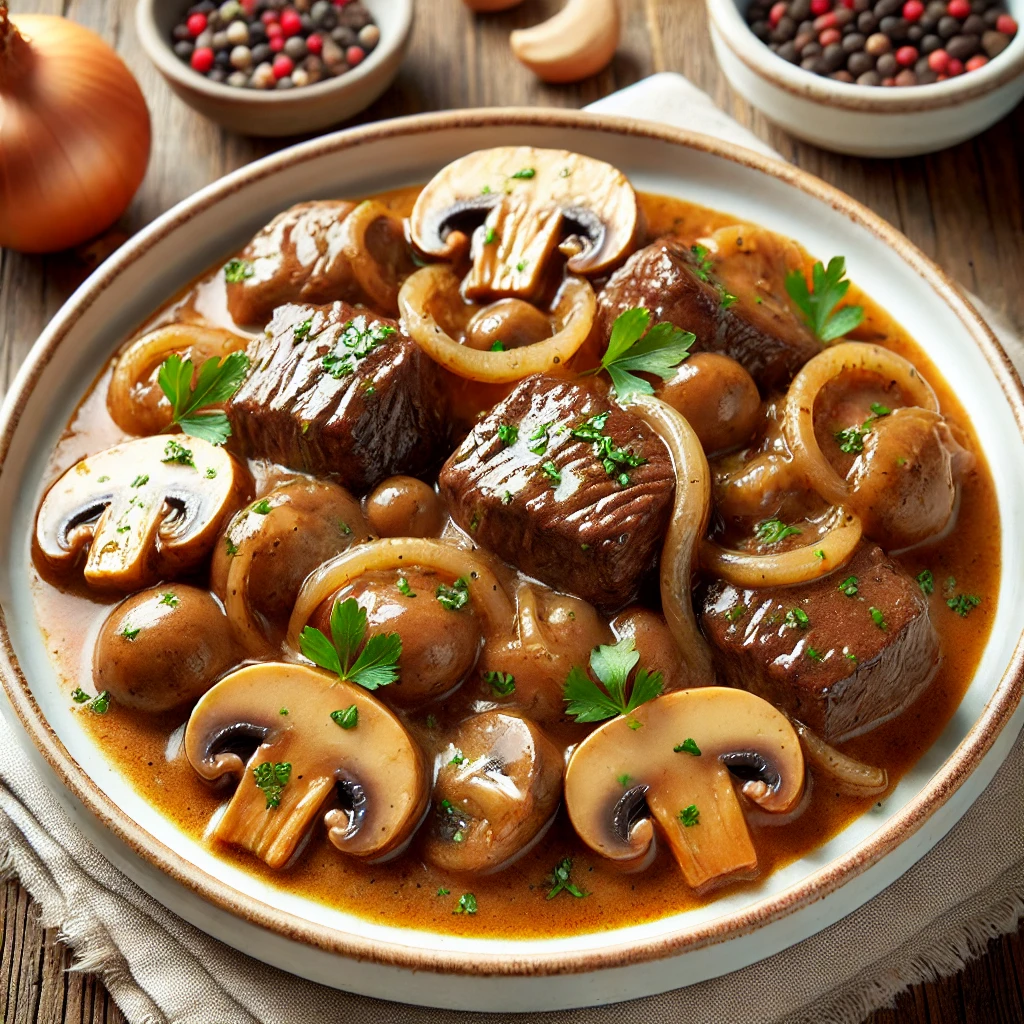- Servir: Sirve la carne de bola en salsa de champiñones caliente, decorada con perejil fresco picado. Puedes acompañarla con arroz blanco, puré de papas o una ensalada verde.